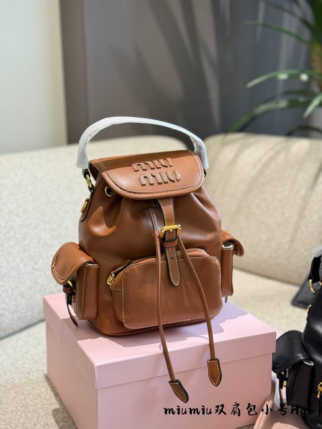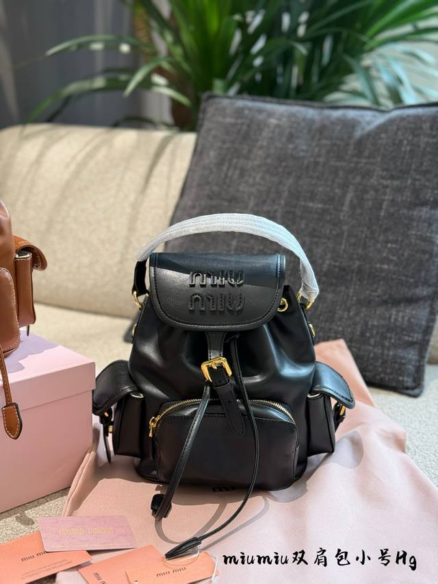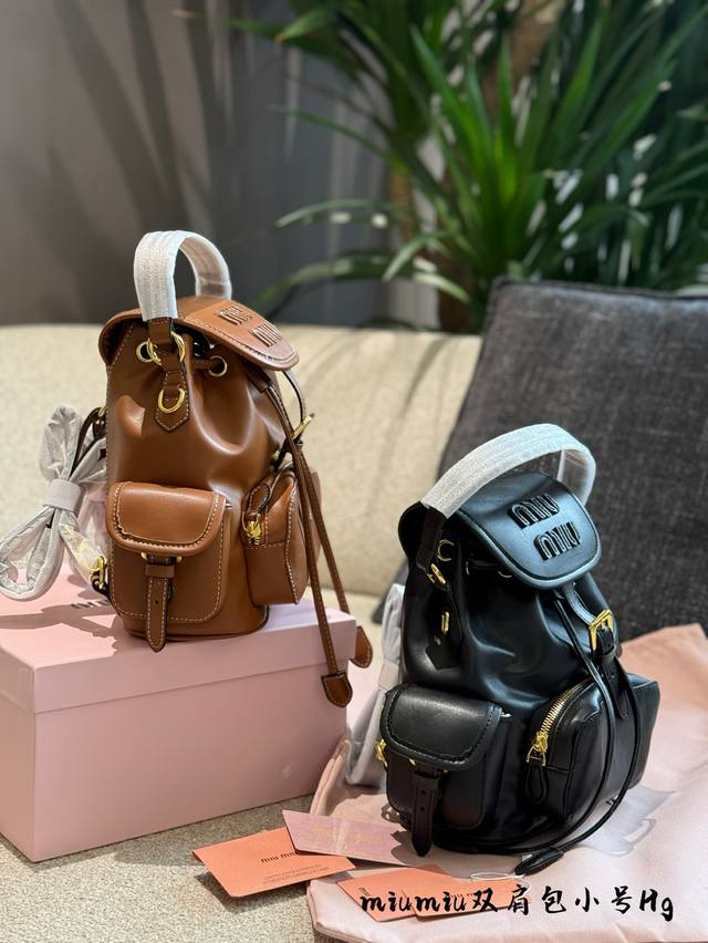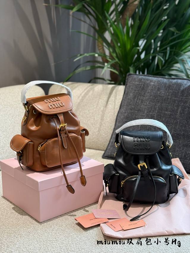 Miumiu缪缪双肩包,少女心爆棚,精致的五金和独特的设计,为整个穿搭加分不少,实用又好看,无论是日常出街还是通勤.上学都超适配。18×22配盒子