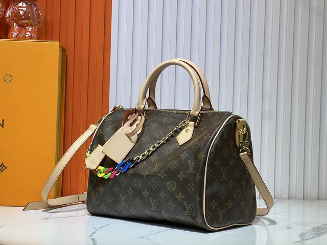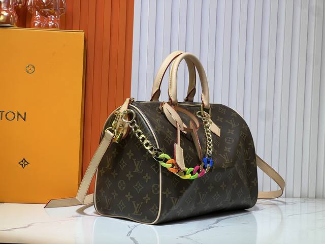 / M24422 M24423 本款 Speedy BandoulièRe 30 Monogram Leather 手袋为柔软粒面牛皮革包裹羊皮革内衬,以丝印 Mo