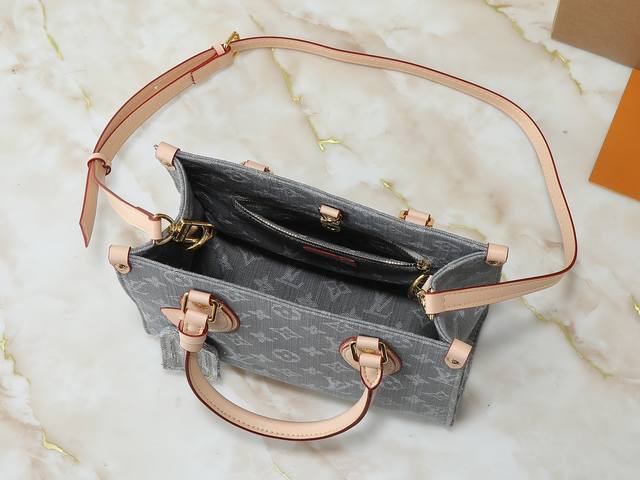 / 升级原版 M14633 M46373 蓝色丹宁牛仔四方包 本款 Onthego 小号手袋选用棉质丹宁织就 Monogram 图案,经漂白和砂洗后呈现复古风范。拆