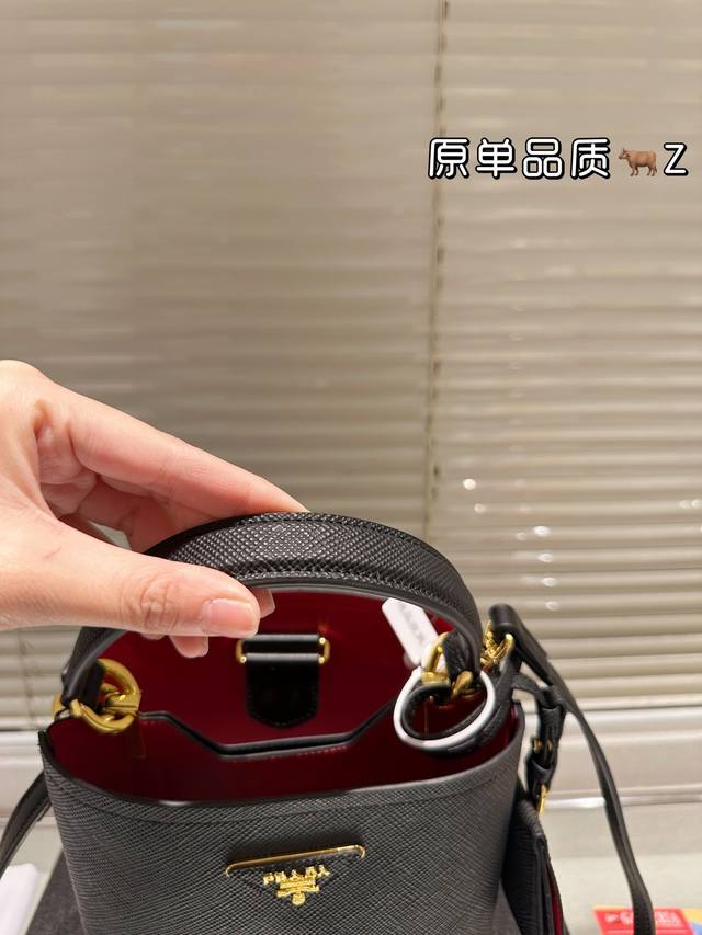 配盒 牛皮 Size: 18*18Cm prada 水桶包 太爱水桶包了!! 日常利用率最高! 休闲和上班都很适用的一个包包 原版牛皮!原版五金!