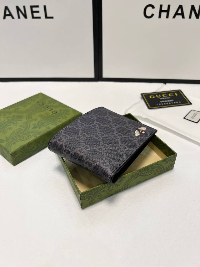 / 颜色 黑 咖尺寸 11X10型号 451268Gucci最新爆款印花短夹钱包小蜜蜂出货,官网同步火爆登场精致手工制作
