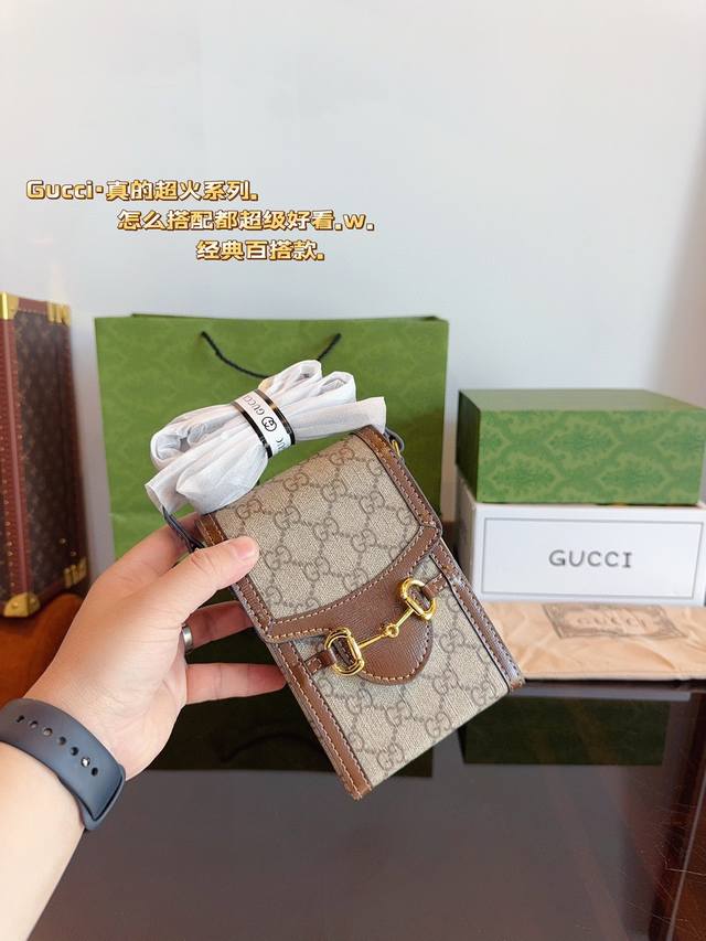 配礼盒 Gucci 古驰 1955 Mini斜挎包woc单肩 手机包 百搭款 酷奇 美到无法无天的款式 今年简直引领时尚最in元素 上身超级好看 尺寸:11*4