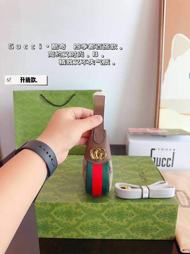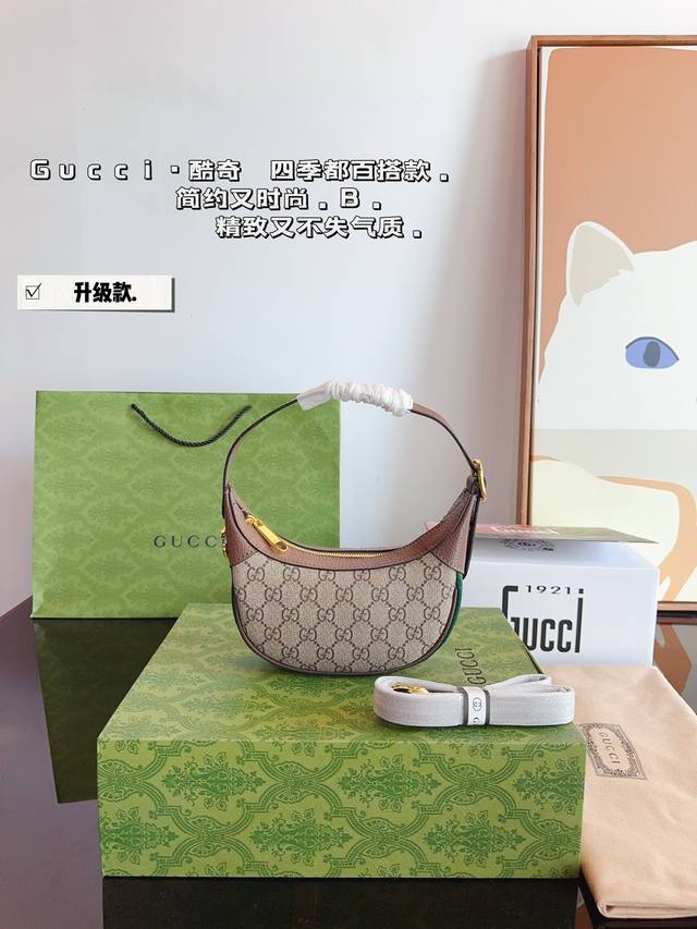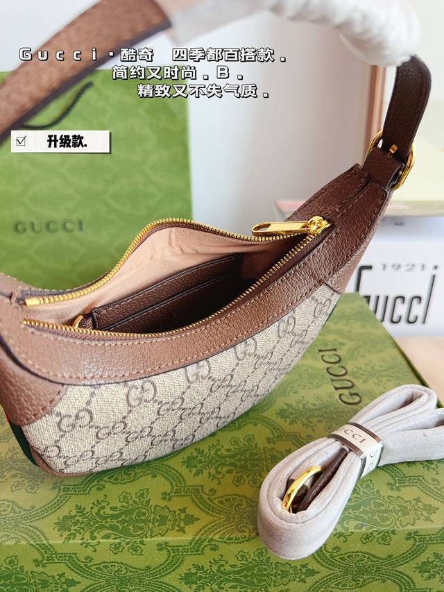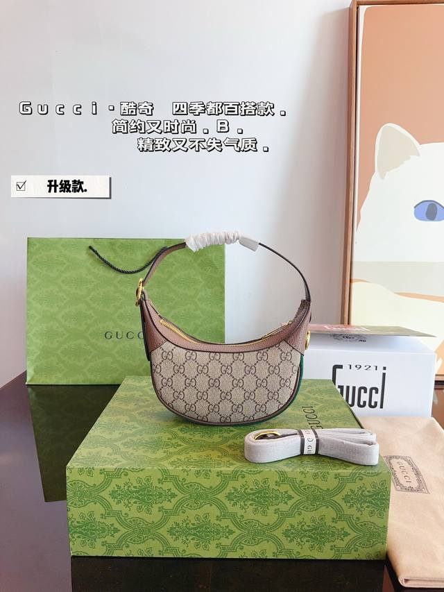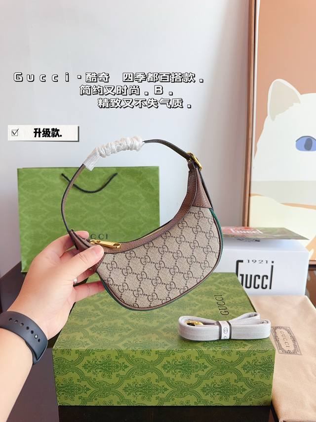 配礼盒 Gucci 古驰半月牙 腋下包单肩斜挎包手袋腋下包 可以 美到无法无天的款式 今年简直引领时尚最in元素 上身超级好看 尺寸:17*5*10Cm