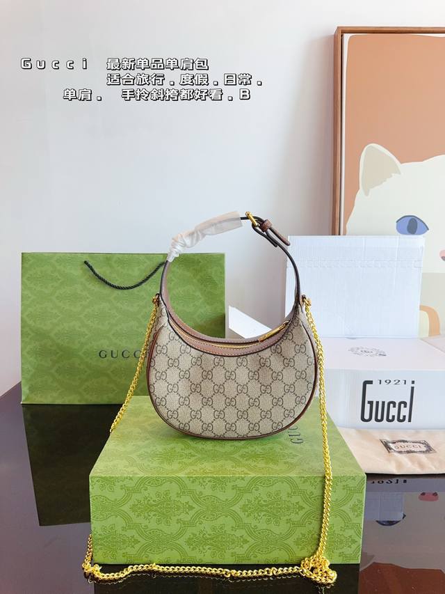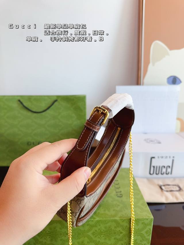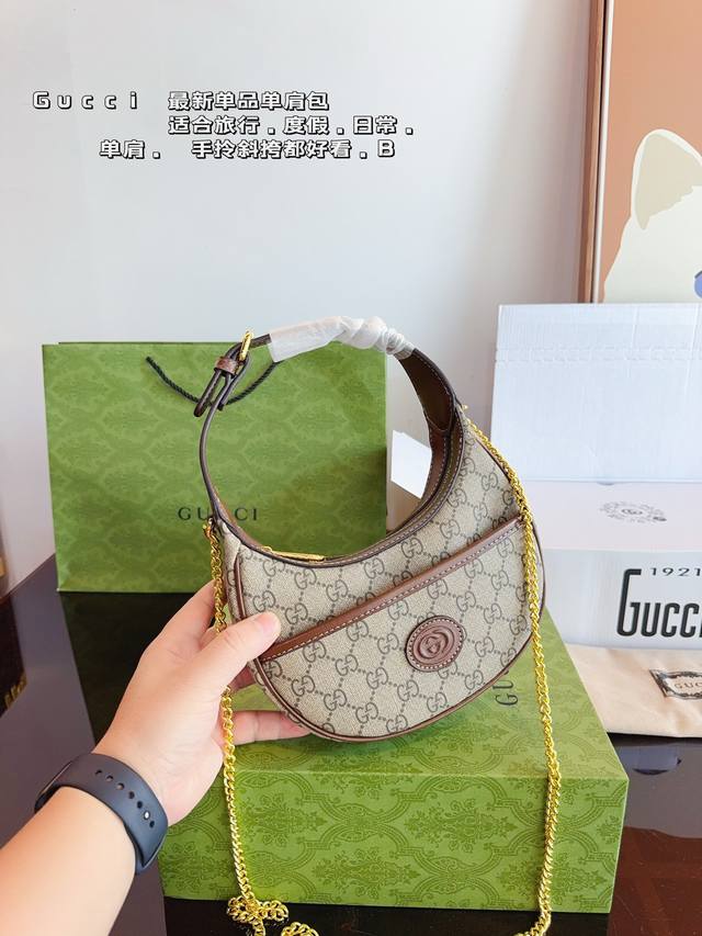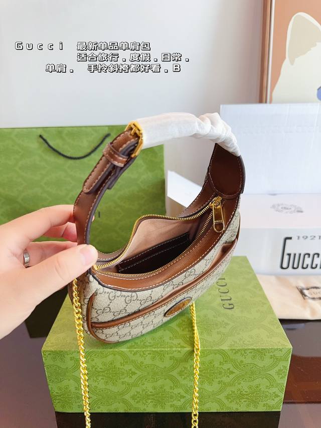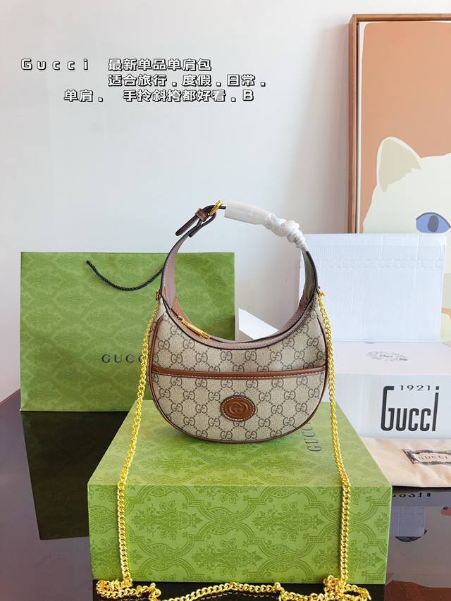 配全套飞机礼盒 Gucci 古驰半月牙 腋下包单肩斜挎包手袋腋下包 可以 美到无法无天的款式 今年简直引领时尚最in元素 上身超级好看 尺寸:19*5*11Cm