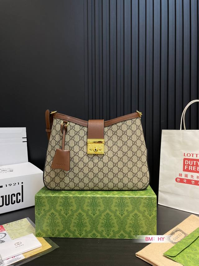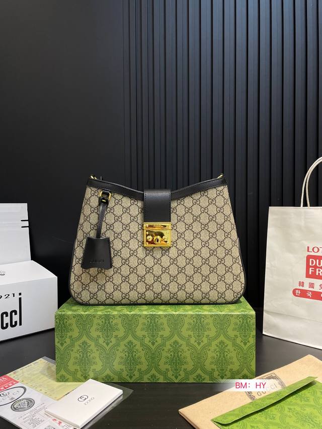 / 大号 配折叠礼盒 Gucci padlock 此款颇具结构感的肩背包采用Gg Supreme帆布精心打造 肩带搭配从档案包造型中直接取用的钥匙锁扣设计 钥匙收纳