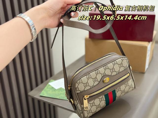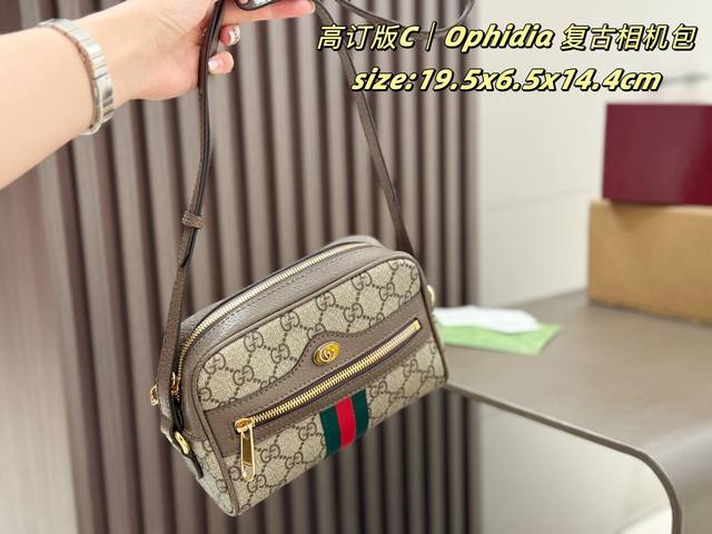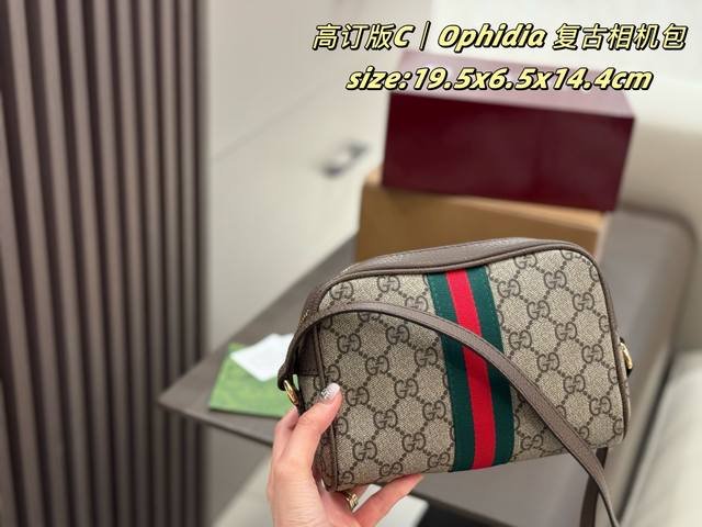 牛皮 双盒包装Gucci Ophidia 复古相机包想要拥有一只帆布质地的复古风斜跨手袋的帅锅美女们,Gucci的中古相机包,它来啦!不管是夏天还是秋天,他都可以营造出满满的港式复古氛围感 重要的是,这只包包的风格以及 Size完全不挑性别和身高,超级 Nicel关于它的肩带,有一些朋友说有点长,但是我看其他博主把多余肩带缠绕在了带扣两侧,还蛮不错的。容量方面的话,能够轻松装下手机、钥匙、卡包、纸巾等小物件,基本日常需求都可以满足,所以不用担心它的实用性啦。当然美观性就更不用说,背上妥妥的复古范我认为这只