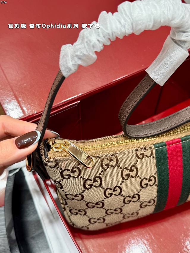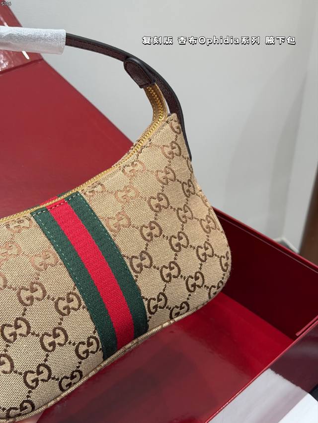 礼盒包装 复刻版 Gucci Ophidia系列迷你Hobo腋下包 米色杏布帆布+双G织带,红绿织带超有辨识度。拉链开合更安全,小巧尺寸,手提肩背都Ok,通勤休闲都能搭配。灵感来自佛罗伦萨,复古又时髦,实用又有收藏价值,是Gucci经典系列代表,复古控必入!尺寸 23Cm