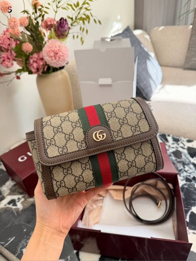 配盒 Gucci酷奇胸包腰包 男女同款 最新系列 复古韵味特别浓 对版肩带 原版内里 上身效果超赞 尺寸25 17