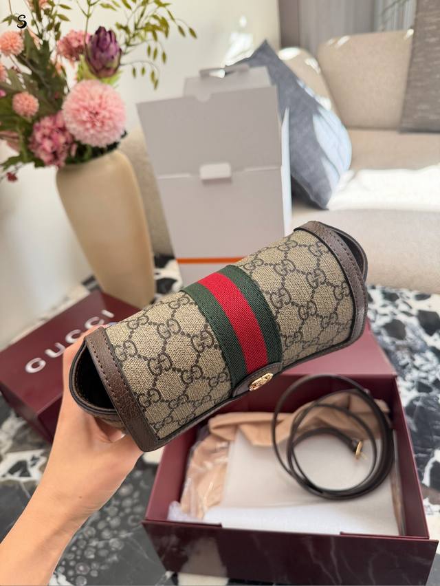 Gucci复古小挎包|经典永不过时 谁能拒绝Gucci这款复古小挎包啊! 经典Gg老花满是高级感,红绿织带点缀超有辨识度,金属双G标志精致又吸睛~ 肩带可调节,斜挎很方便,日常出街或者搭配小裙子都超合适,妥妥的时尚利器,背上就是精致时髦精本人18Cm配盒子