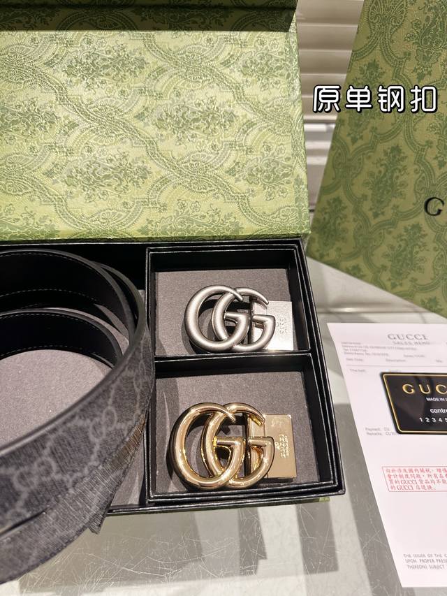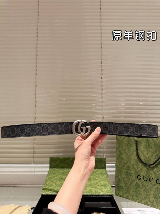 双头 钢扣 高版本!腰带 Gucci牛皮皮带~热门款 男女通用皮带里面最火的版本啦~质量很好 全套包装!五金绝对不褪色 皮带头和专柜一样的哦~ 配礼盒手提袋发票