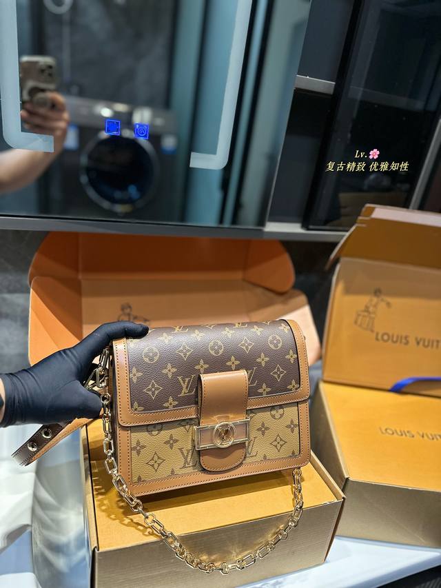 牛皮 Louis Vuitton Dauphine达芙妮邮差包,全牛皮,万能搭配四季,夏日轻薄都能hold住。复古但上身时髦的信封包,线条硬朗流畅。绝对是一款爱不释手的包包。 尺寸 25 18Cm 20 16Cm