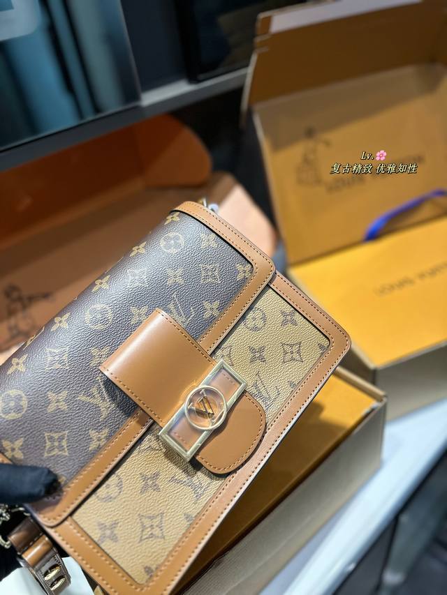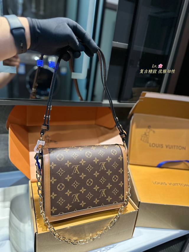/ 牛皮 Louis Vuitton Dauphine达芙妮邮差包,全牛皮,万能搭配四季,夏日轻薄都能hold住。复古但上身时髦的信封包,线条硬朗流畅。绝对是一款爱
