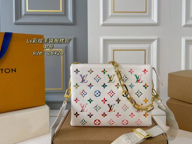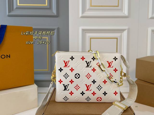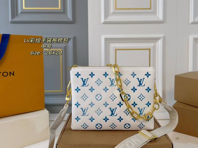 / 中号 配盒 Size:26×20 Lv路易威登coussin手袋抱枕包 包如其名像只柔软可爱的小坐垫, 包身立体浮雕logo,低调复古 大气又时髦!有被它酷到!