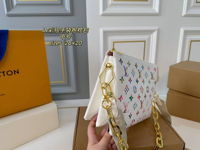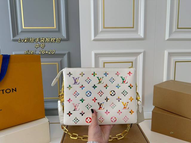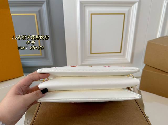 中号 配盒 Size:26×20 Lv路易威登coussin手袋抱枕包 包如其名像只柔软可爱的小坐垫, 包身立体浮雕logo,低调复古 大气又时髦!有被它酷到!