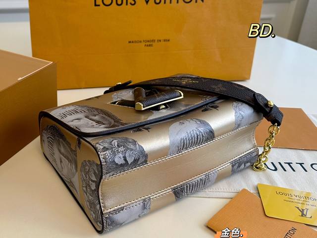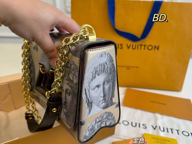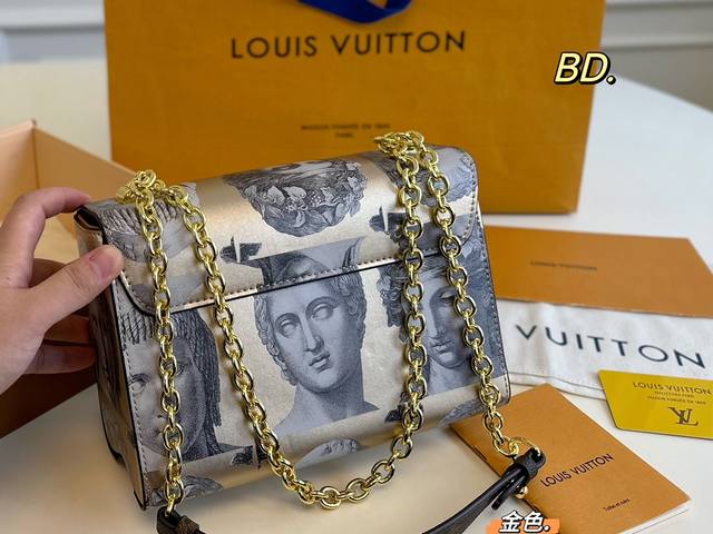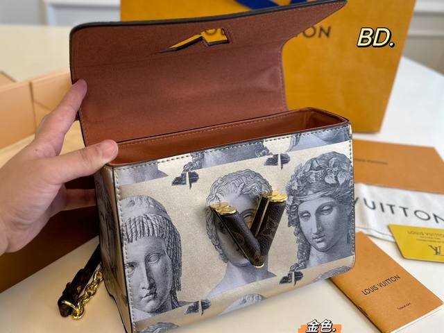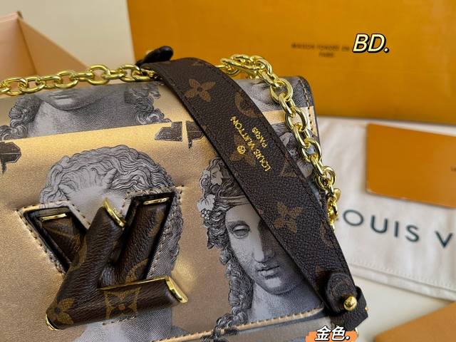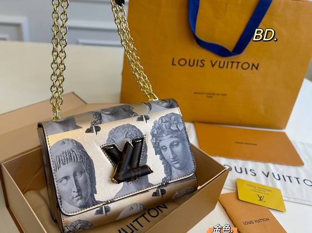 / 折叠盒 Size:23×16 Lv路易威登twist链条手提包 古典肖像印花,设计巧妙 鎏金底色 有渐变光影的效果 皮料非常坚硬 防水耐磨 颜值在线 简约大气