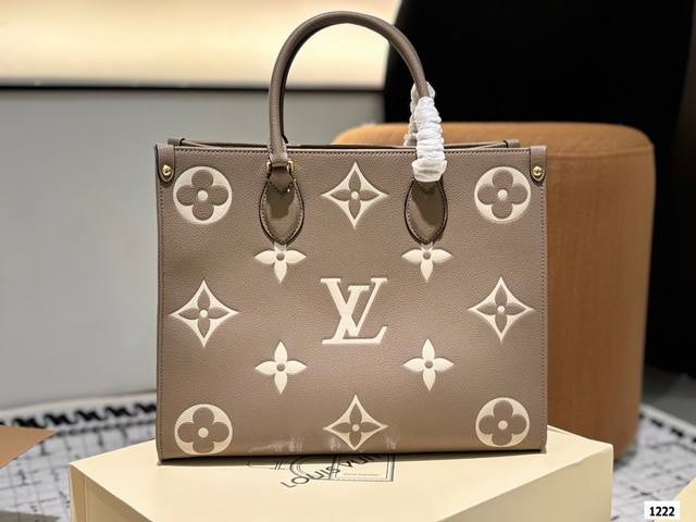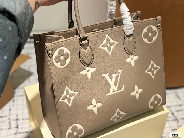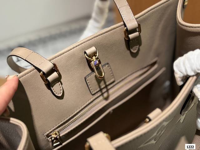 Lv本款onthego中号手袋释放monogram Empreinte压纹皮革的娴雅意味,可为当季造型注入盎然春意。充裕容量满足都市出行或商务所需,顶部手柄和长肩带实现 多种背携方式q!