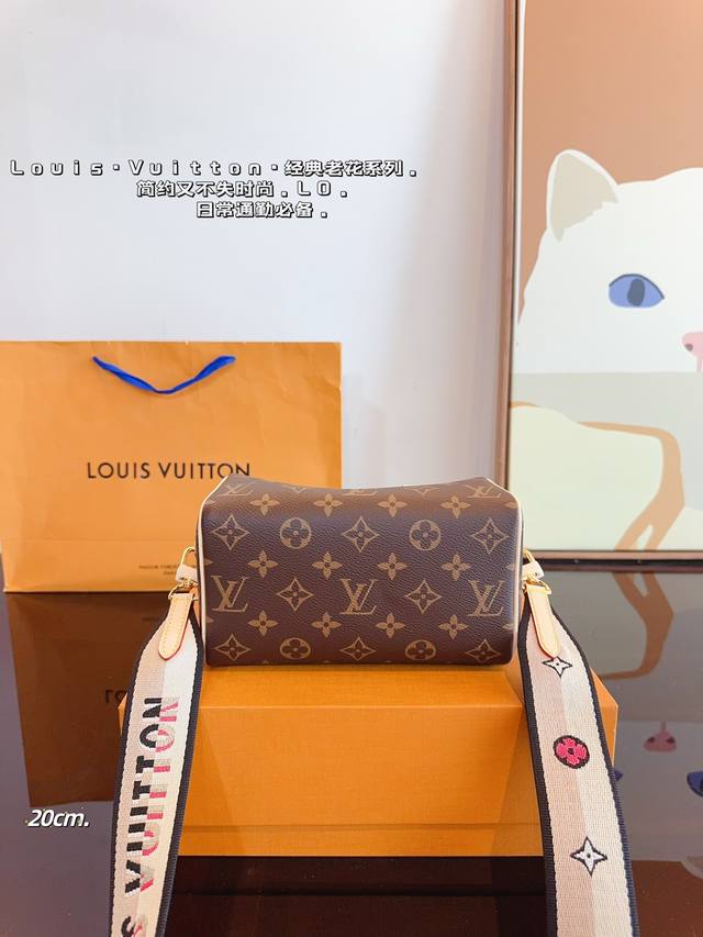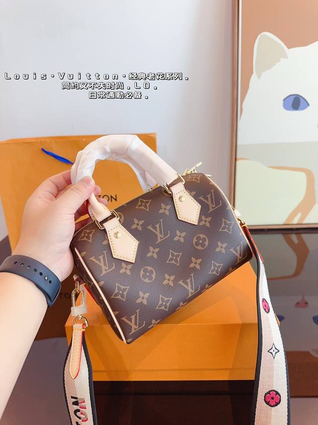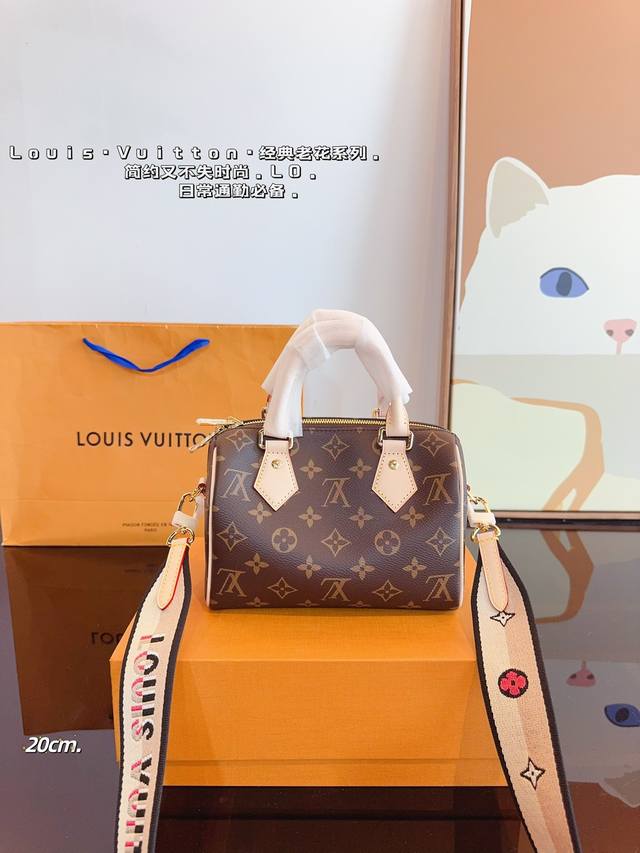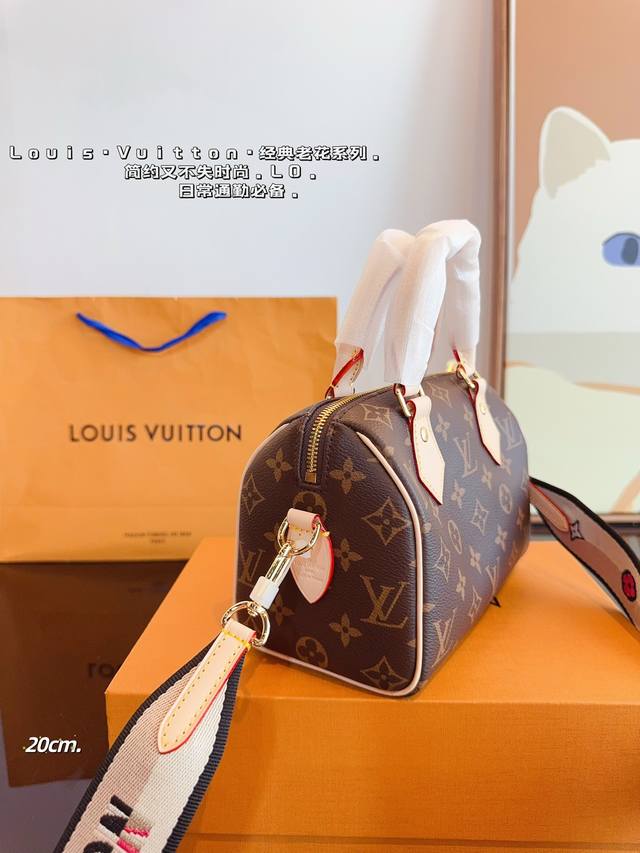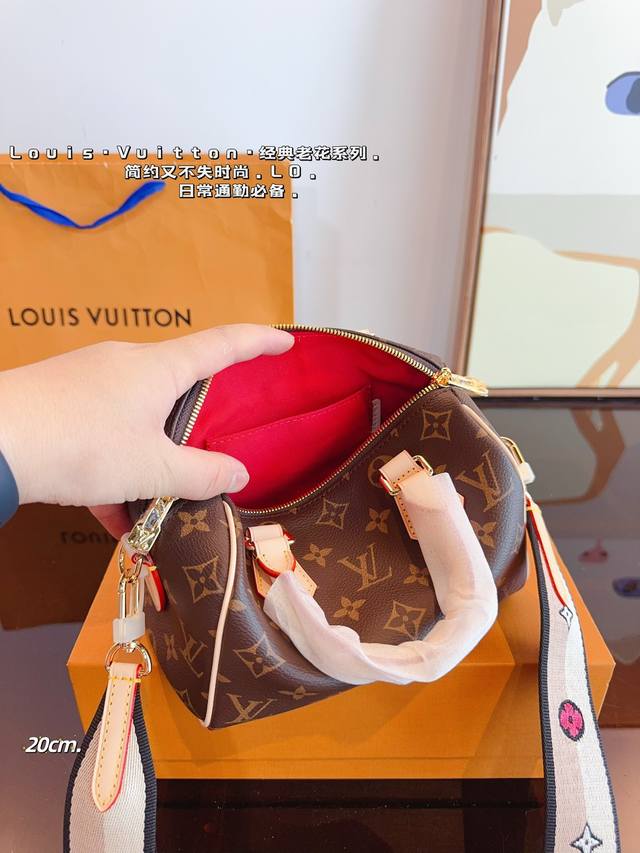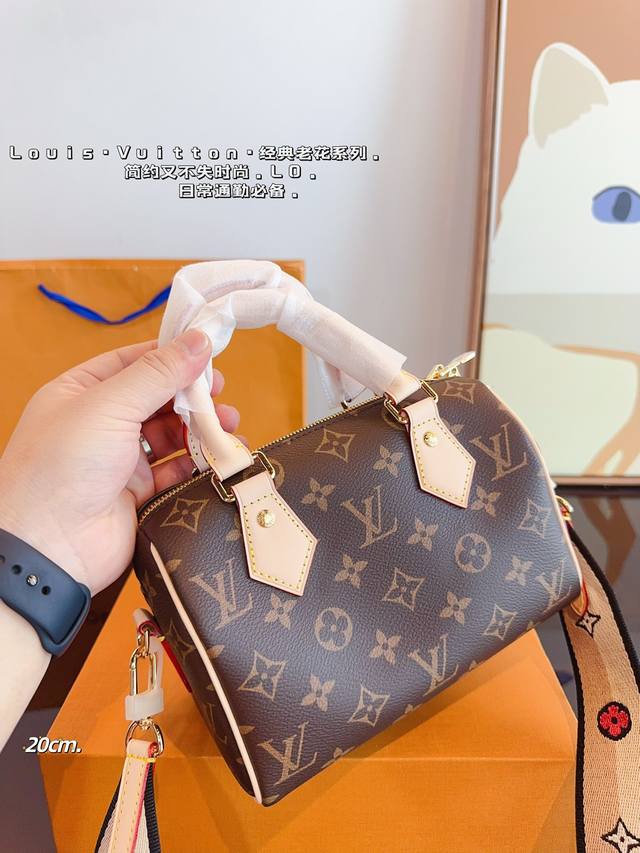 Lv Speedy 枕头包 这款retiro 手袋以标志性的lv老花面料制成,搭配奢华的变色牛皮饰边,经典永恒。优雅低调的外形设计和宽敞的包 全包对花.尺寸:20*11*14Cm