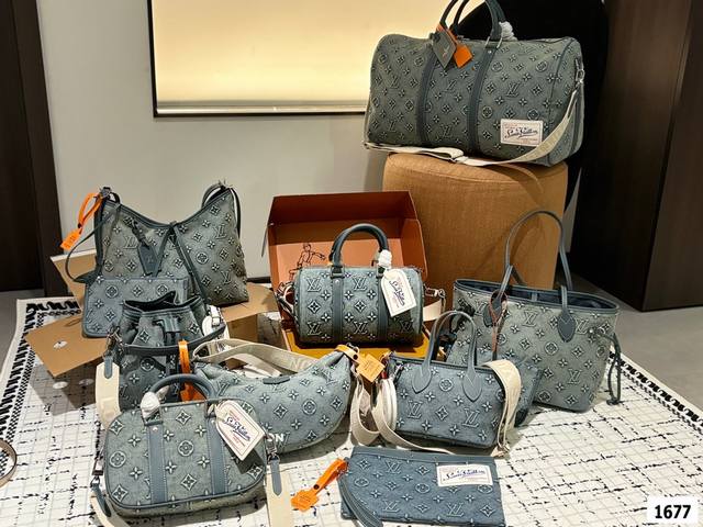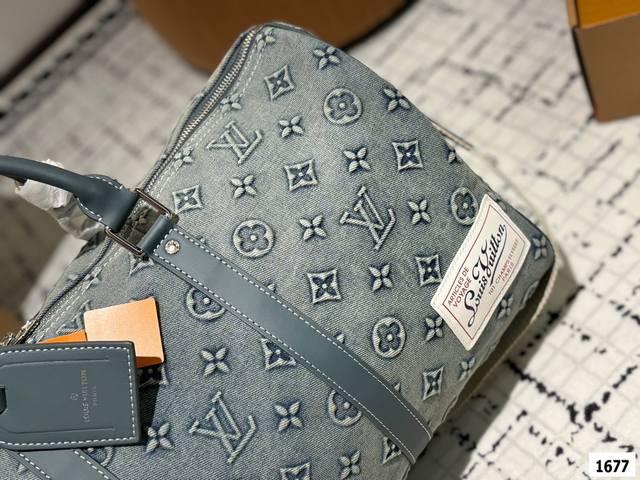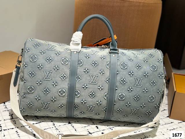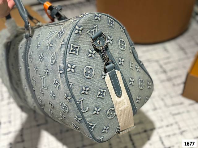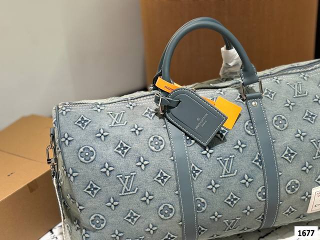 超酷中lv Keepall老花牛仔旅行袋