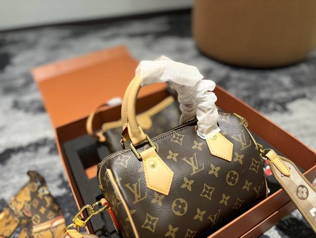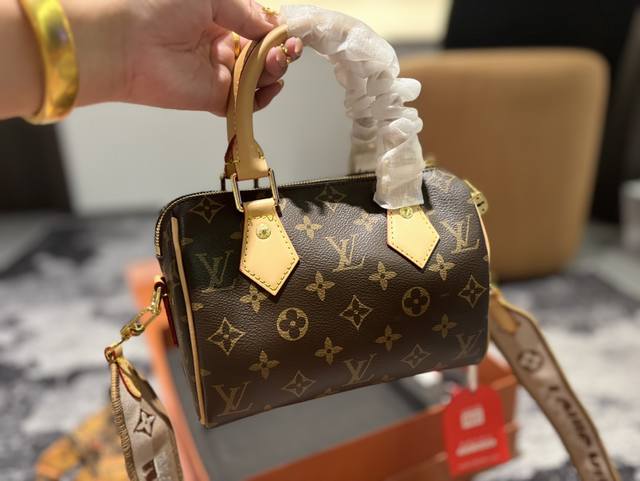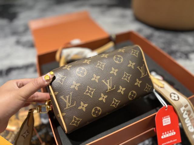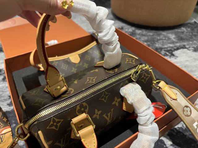 Lv 小枕头包 原单密封包装对nano Speedy尺寸相当小巧 所以搭配中尽显时尚靓丽迷人气质,但是携带轻盈,轻轻松松搭一款nano Speedy出门,它不仅