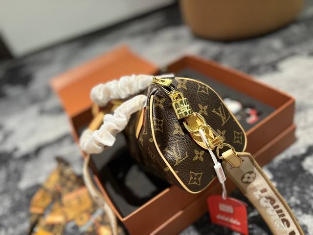 Lv 小枕头包 原单密封包装对nano Speedy尺寸相当小巧 所以搭配中尽显时尚靓丽迷人气质,但是携带轻盈,轻轻松松搭一款nano Speedy出门,它不仅适合休闲打扮,同样适合运动、旅行、参加party时使用哟,小身材的迷你包就是这么任性20*14Cm 全套礼盒