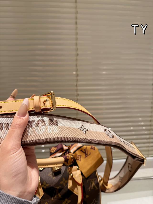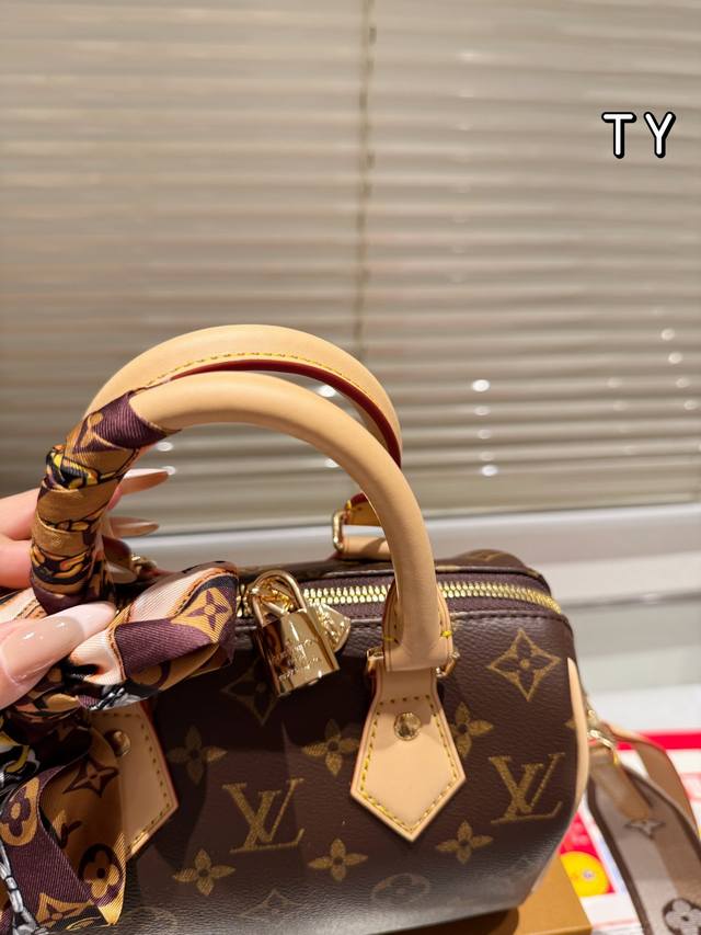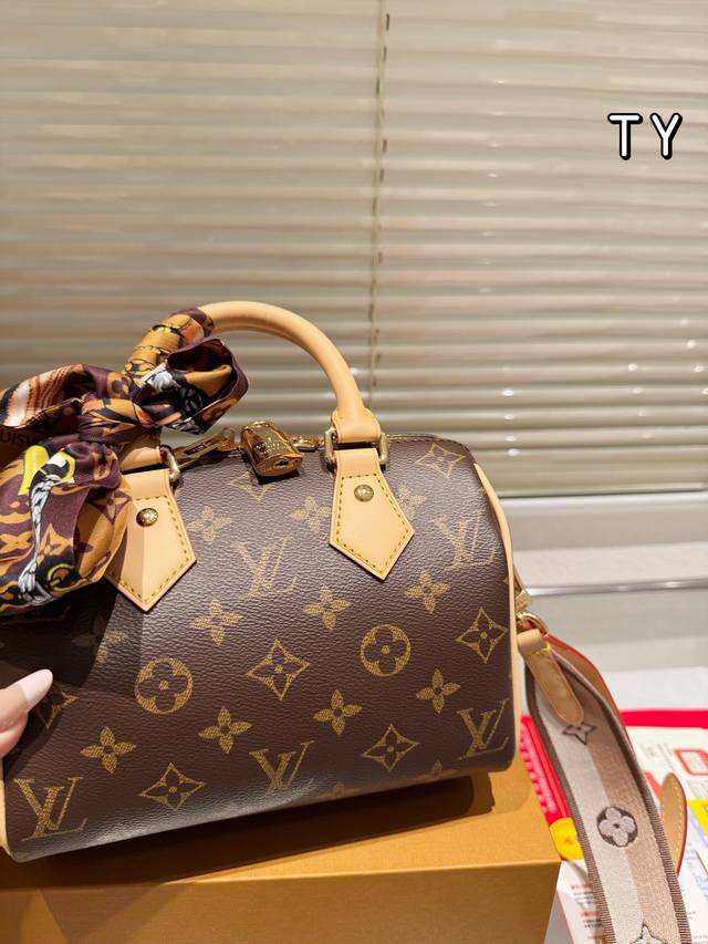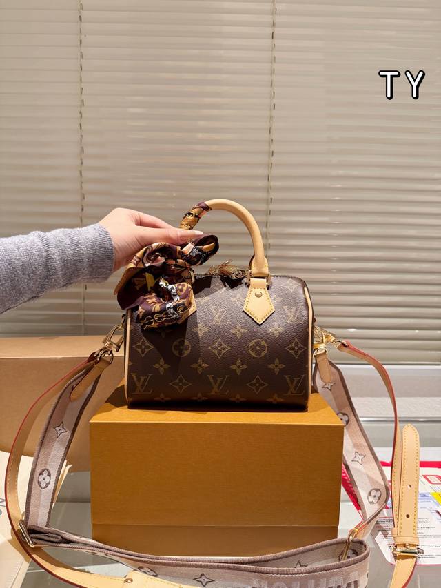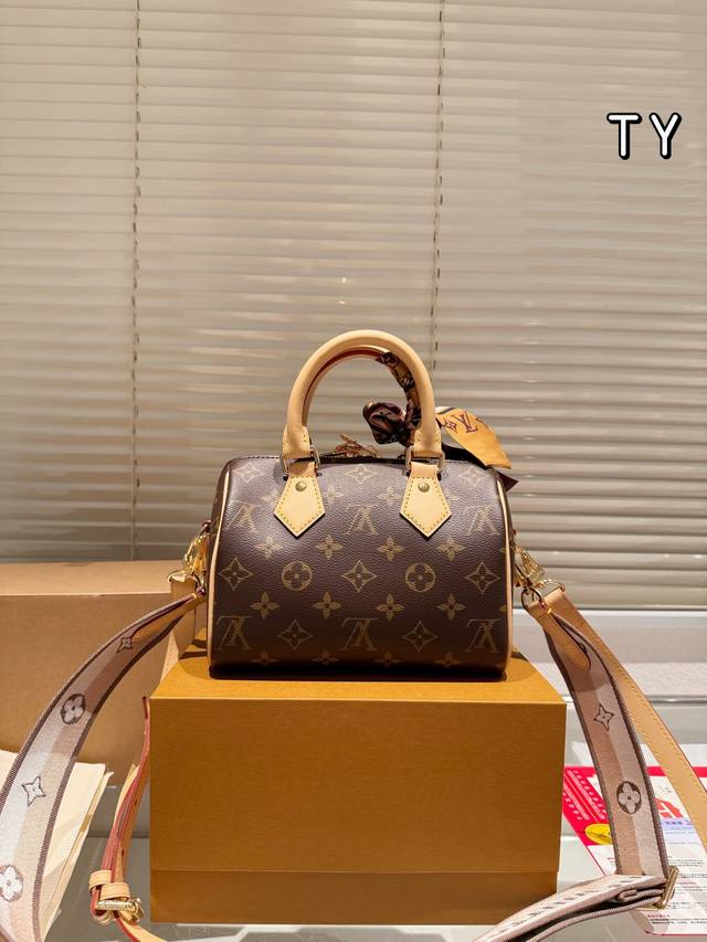 Lv 两根肩带 Speedy20手袋最新款刺绣肩带枕头包老花手提单肩斜挎包尺寸:20*13*12Cm 天然变色牛皮 原版五金 重工双面刺绣肩带 全套包装