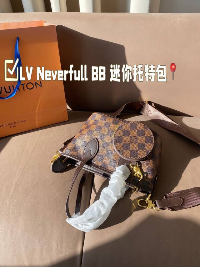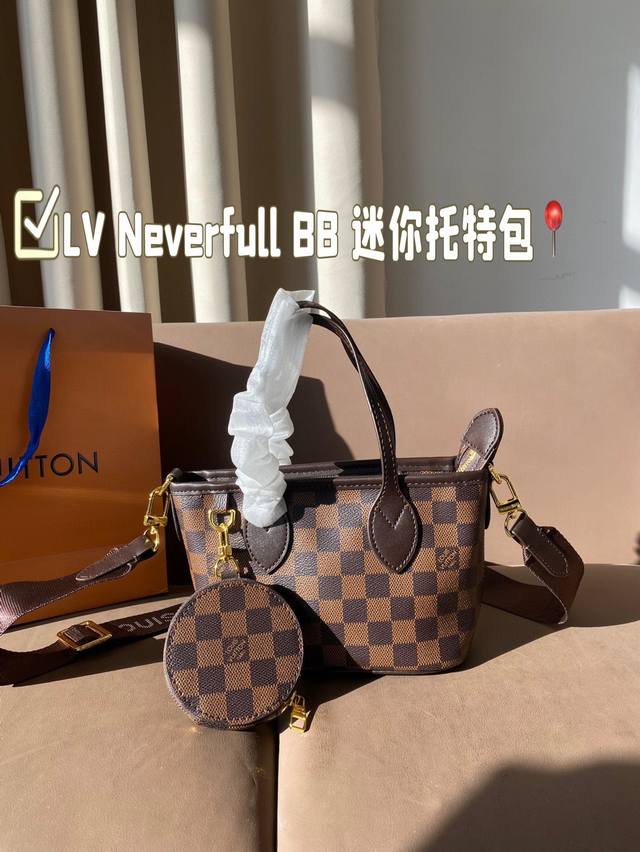 印花系列~Lv专柜爆款neverfull Bb 迷你托特包配圆饼零钱包挂件配原版彩带肩带超级美人手必备单品!专柜同款!原版压花 整包对华裁剪!原版五金!上身效果超棒!超高回头率!原版折叠礼盒包装