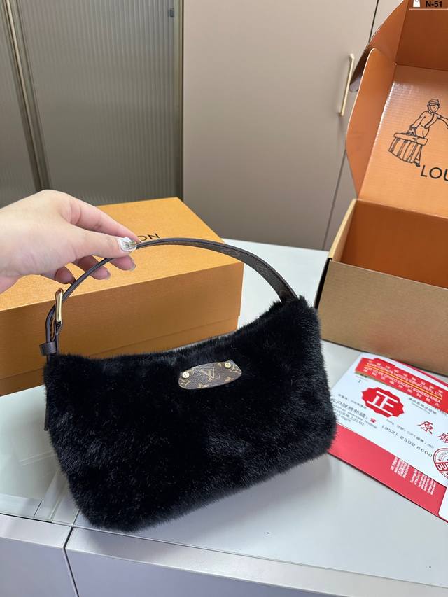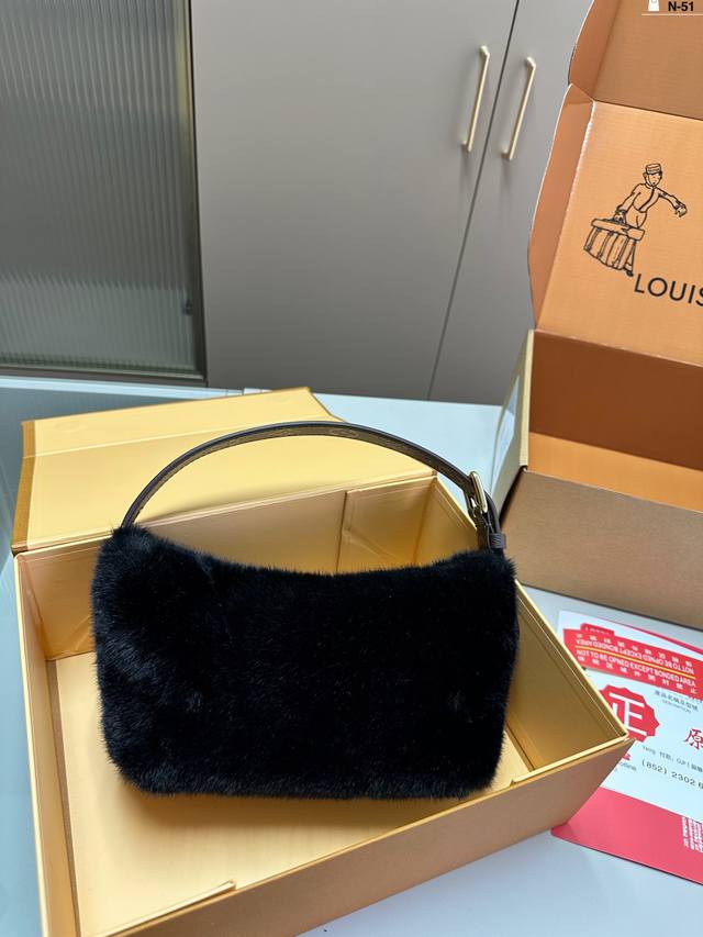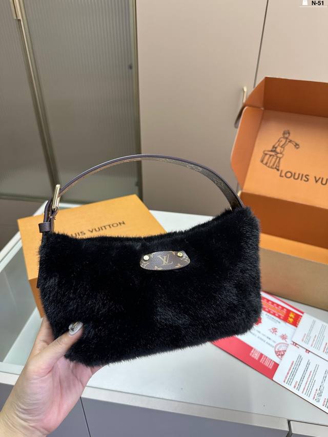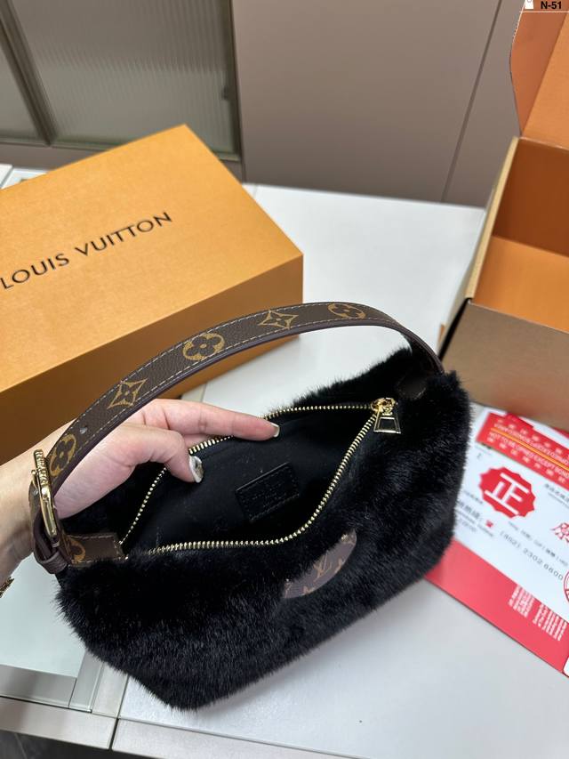 / Lv新品毛毛包来咯 一只看似中古中矩却 又有点标新立异的包。 Hobo腋下包 N-51尺寸:20×10折叠盒飞机盒
