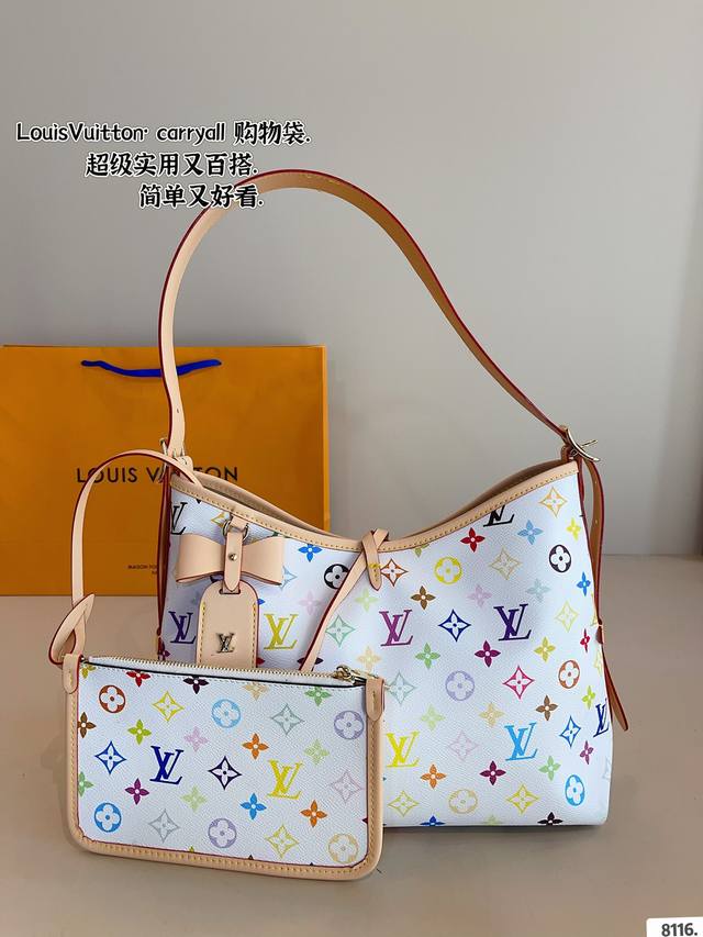 #Carryall V7月新款,可斜挎、单肩。容量保证,敞口磁铁吸内扣取放平板小电脑非常方便,设计比neverfull小巧、肩带够宽不那么勒;比graceful俏皮,上身完全;是驴家通勤包款颜值担当 尺寸:28*13*25Cm