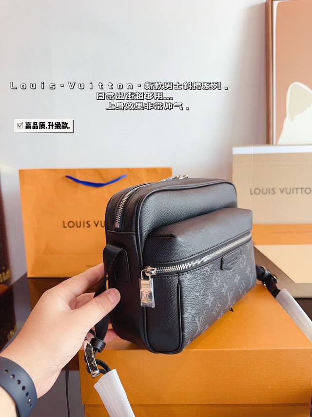 Lv 新款messenger 邮差包男包 出自男装艺术总监kim Jones之手的新款messenger 斜挎邮差包,涂层帆布材质,配有编织带、尽显运动风范。商务工作中的理想伴侣。尺寸:25*5*19Cm