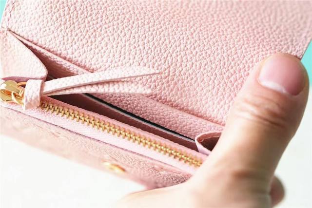 工厂p价 顶级原单 M81455粉 头层牛皮本款 Rosalie 零钱包取材 Monogram Empreinte 压纹软粒面牛皮革,以圆润翻盖开启小巧构型,内设拉链零钱袋、贴袋和卡片夹层。路易威登标识铭纹按扣实现稳妥开合。尺寸:11X8X2.5Cm.