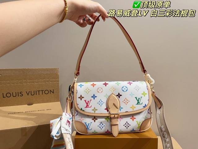 顶级原单 配折叠盒尺寸16.11 路易威登Lv 白三彩法棍包 人间白三彩真漂亮啊白三彩系列每一只都值得收藏 又可以搭配俏皮可爱下次想试试洒脱一点穿搭彩色老花 五