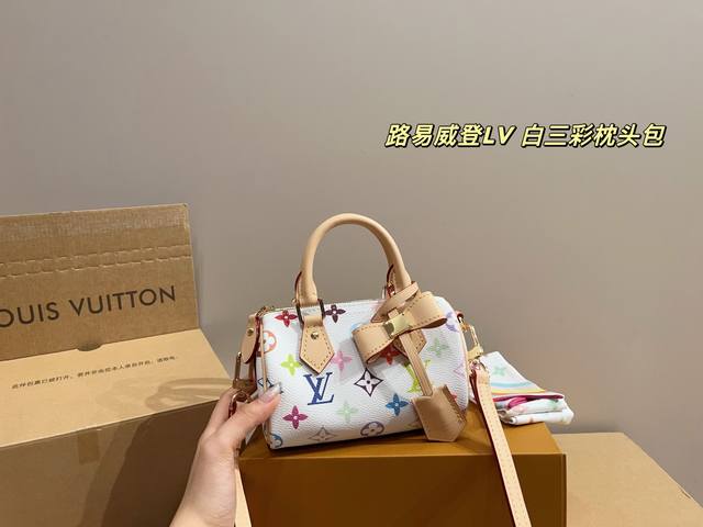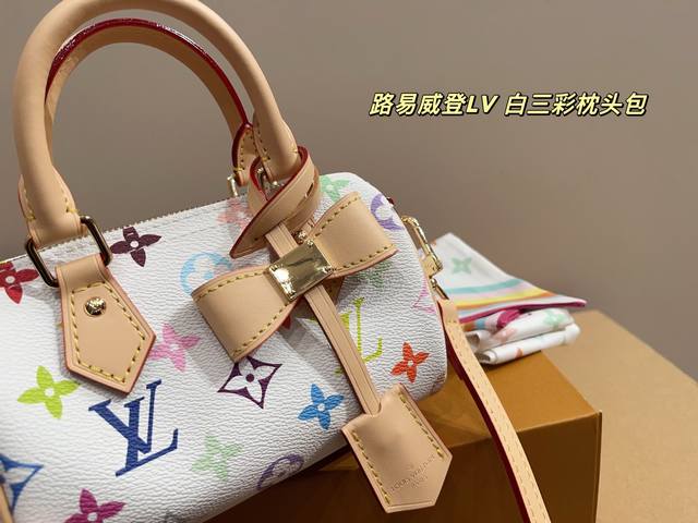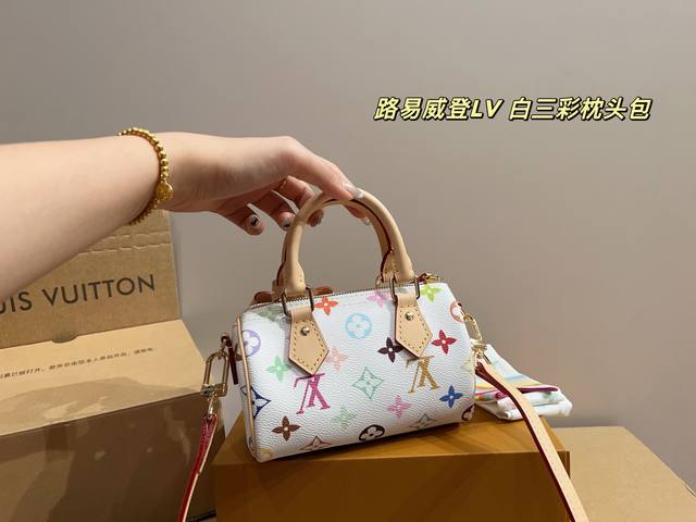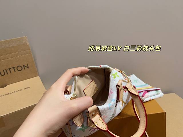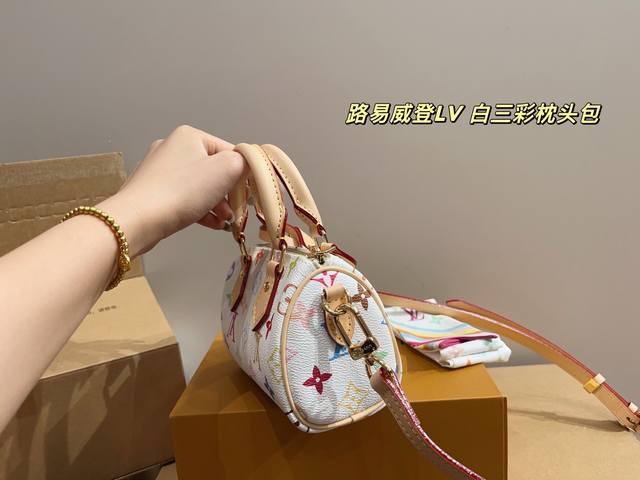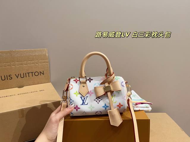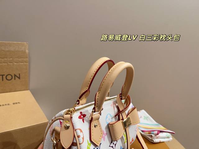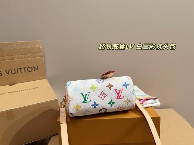 / 配折叠盒尺寸16.11 路易威登Lv 白三彩枕头包 人间白三彩真漂亮啊白三彩系列每一只都值得收藏 又可以搭配俏皮可爱下次想试试洒脱一点穿搭彩色老花 五彩缤纷的少