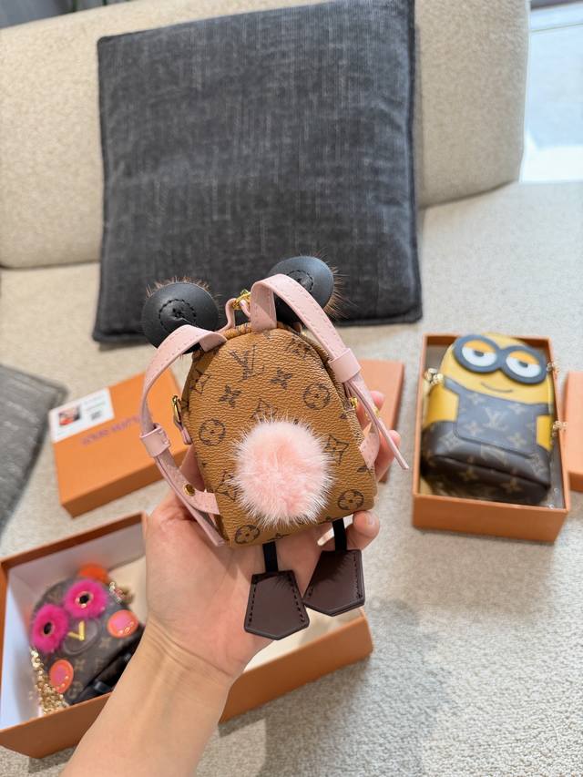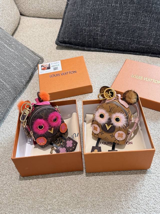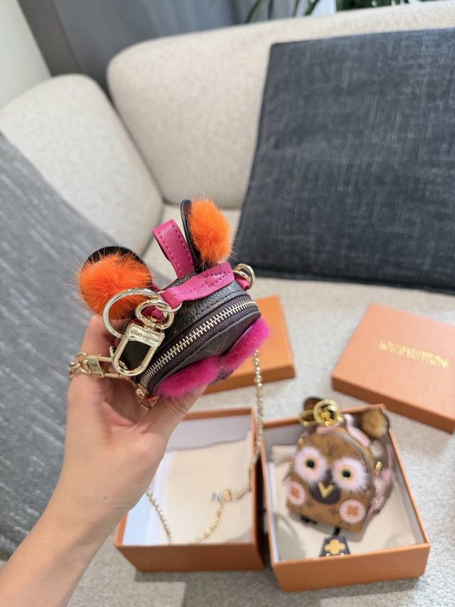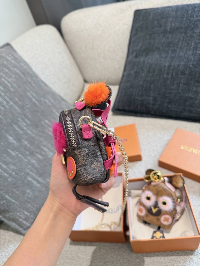 / Lv貂毛猫头鹰零钱包, Lv这款貂毛 猫头鹰零钱包,采用经典Monogram帆布+水貂毛,细节超精致十。迷你双肩包造型,配有金属拉链和链条,既能当钥匙扣挂饰,也