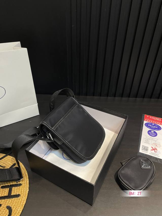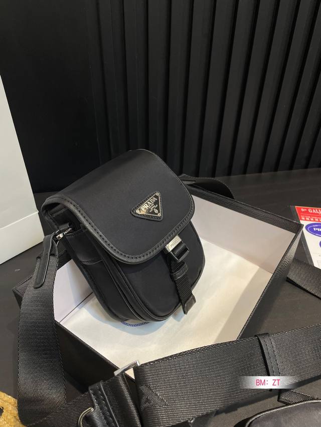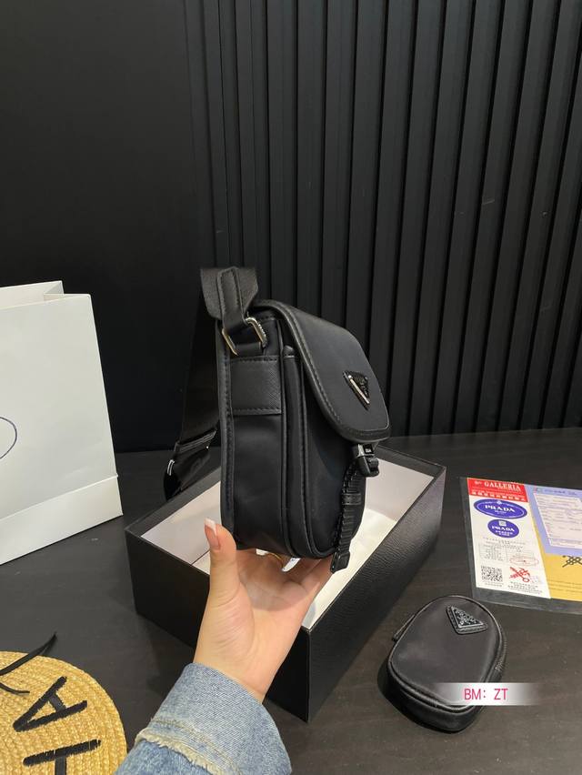 高端货 新款 “ prada ”普拉达单肩包 普拉达牛皮单肩斜挎包 可调节肩带磁吸扣开合 粒面软皮 头层牛皮 单肩斜挎包 男款 黑色...