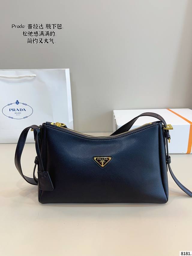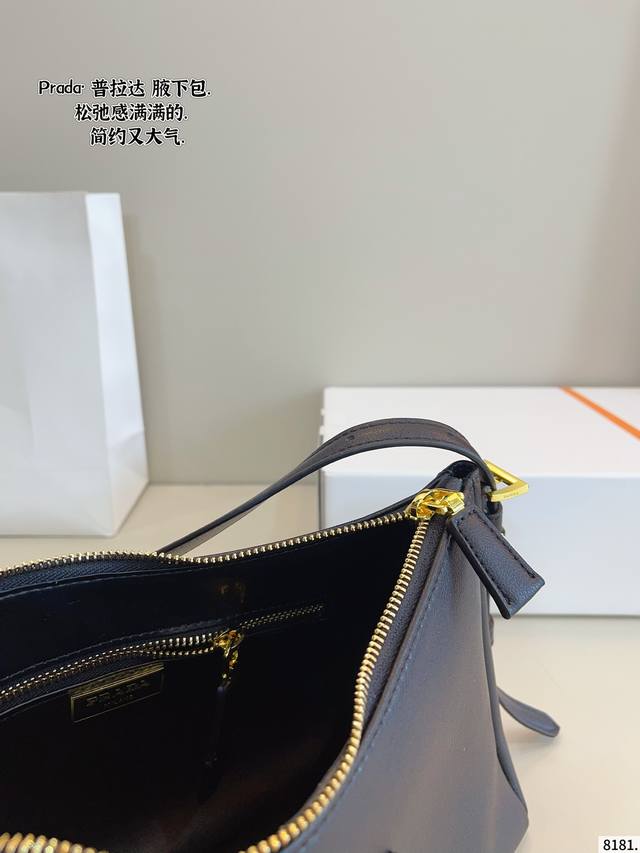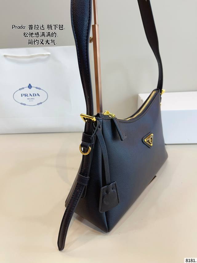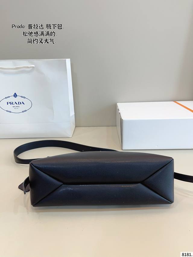 礼盒包装 太绝了 Prada24S S黑色光面皮腋下包...