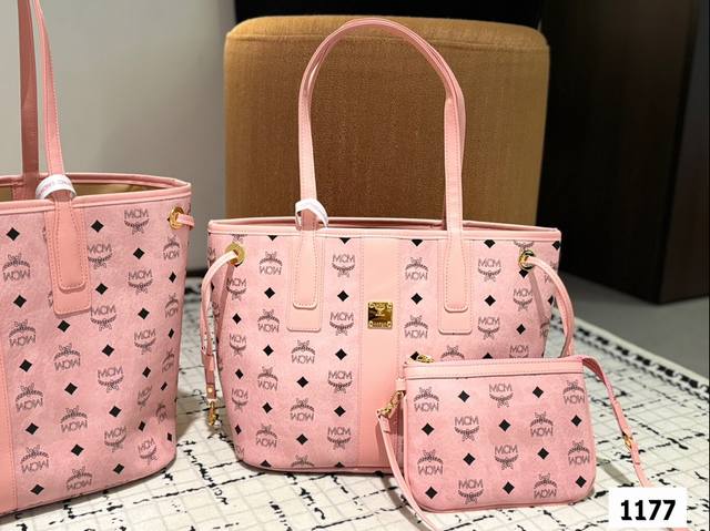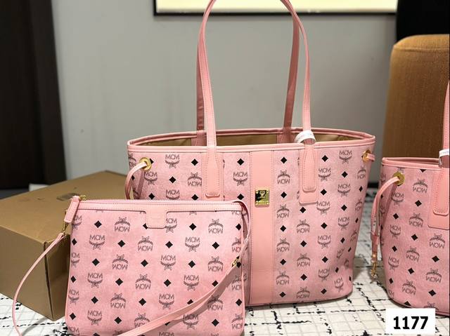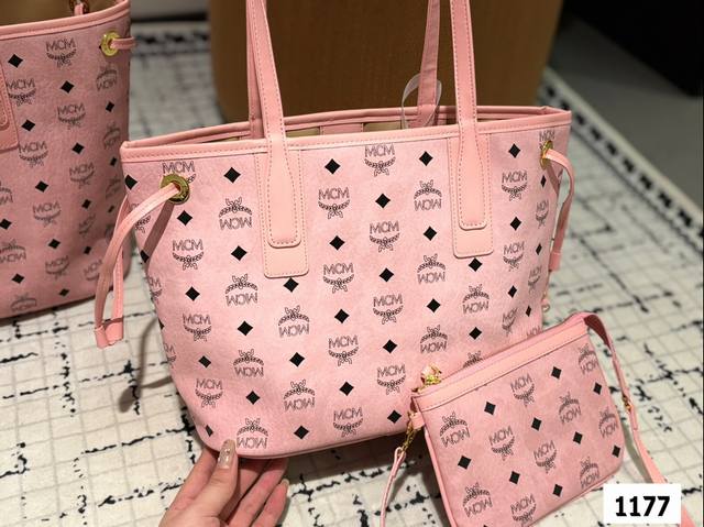 同价 双面原版品质对比。Mcm购物袋两件套高端货包中包。小包可以单被 内容超大 物超所值。超千皮系列妈咪购物袋 原单货 高品质 特别实用的一款原版五金logo