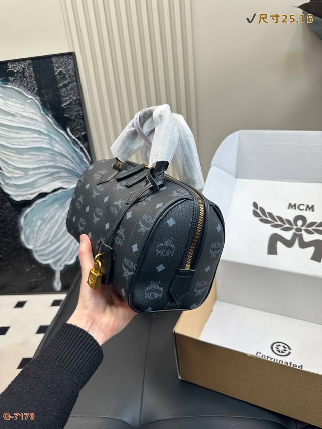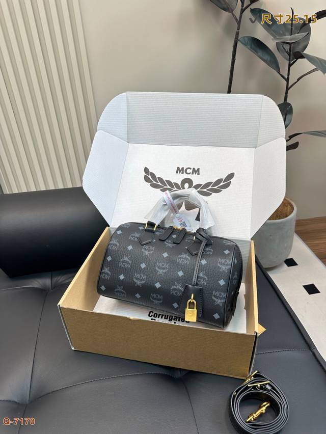 配礼盒 Mcm这季主打就是时尚单品 Mcm波士顿枕头包! 真是方便又实用哦! 这款太可啦! 非常有街头风,酷炫风,男女都可背!尺寸25.15