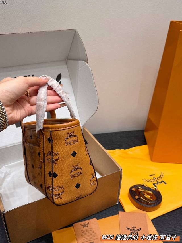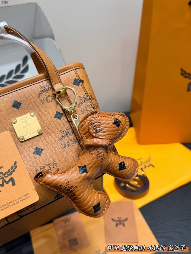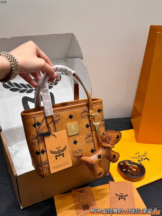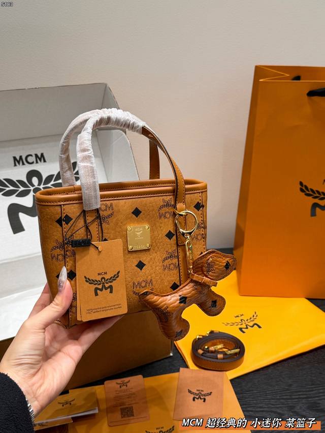 / 礼盒包装 复刻版! Size:17*14Cm 迷你 经典复刻版 Mcm 菜篮子 原单!青岛!Mini 俏皮很百搭 赠送可爱的小狗挂件!