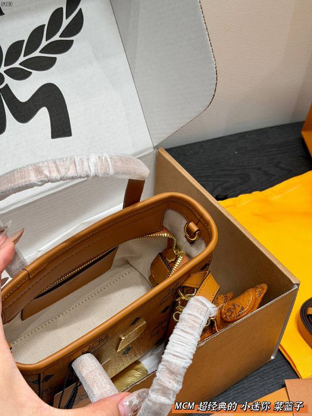 礼盒包装 复刻版! Size:17*14Cm 迷你 经典复刻版 Mcm 菜篮子 原单!青岛!Mini 俏皮很百搭 赠送可爱的小狗挂件!