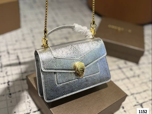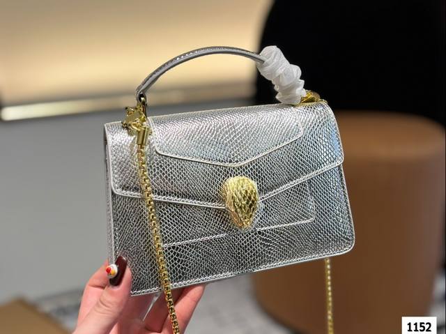 配盒子 宝格丽蛇头包也从未停下脚步,最近几年不断创新,推出了各种各样的新颜色、新款式。不得不说能在千变万化的包包世界中,占领着属于自己的一席之地,充满了贵气和精致感!光是摆在那就很好看。尺寸:19 13