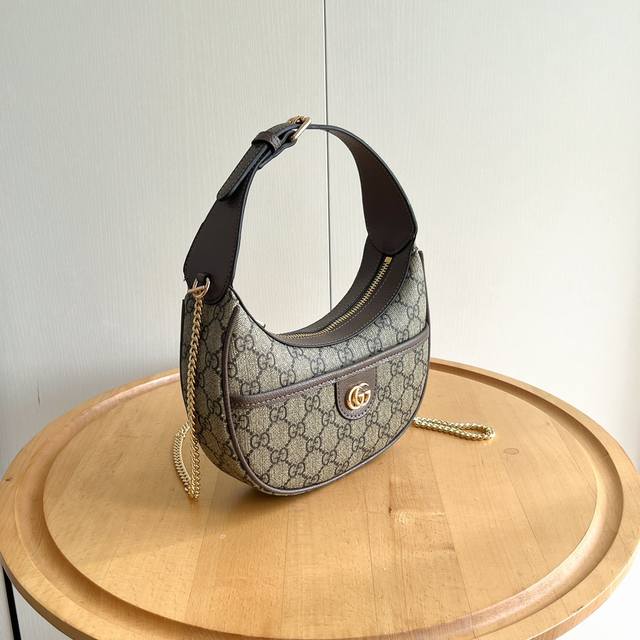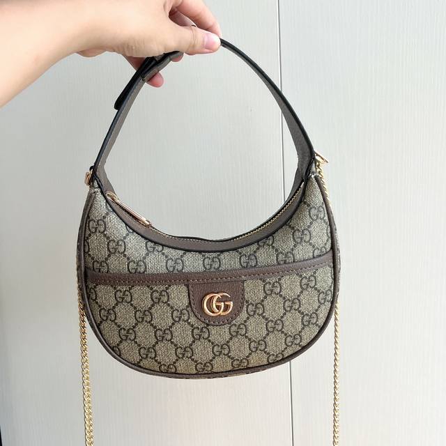 这款迷你手袋采用新月造型搭配Gg Supreme帆布材质,散发出浓郁的复古格调。