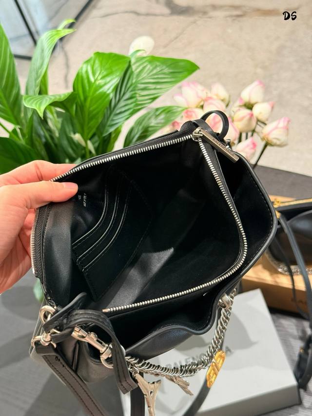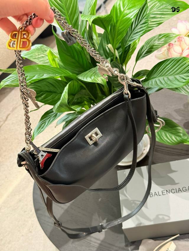 新款可以说出道即巅峰,有是一神作,重新开创- -种新的风格,慵懒塌塌的造型用在巴黎世家没有任何违和,有种桀骜不驯的感觉,皮料看起来超有质感,黑色调性沉稳不失时髦适应不同身高、不同容量,价值与实用与工艺并存,随手拎着就能融入穿搭~颜值直接出圈