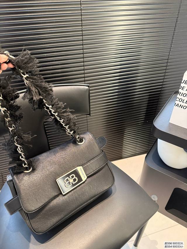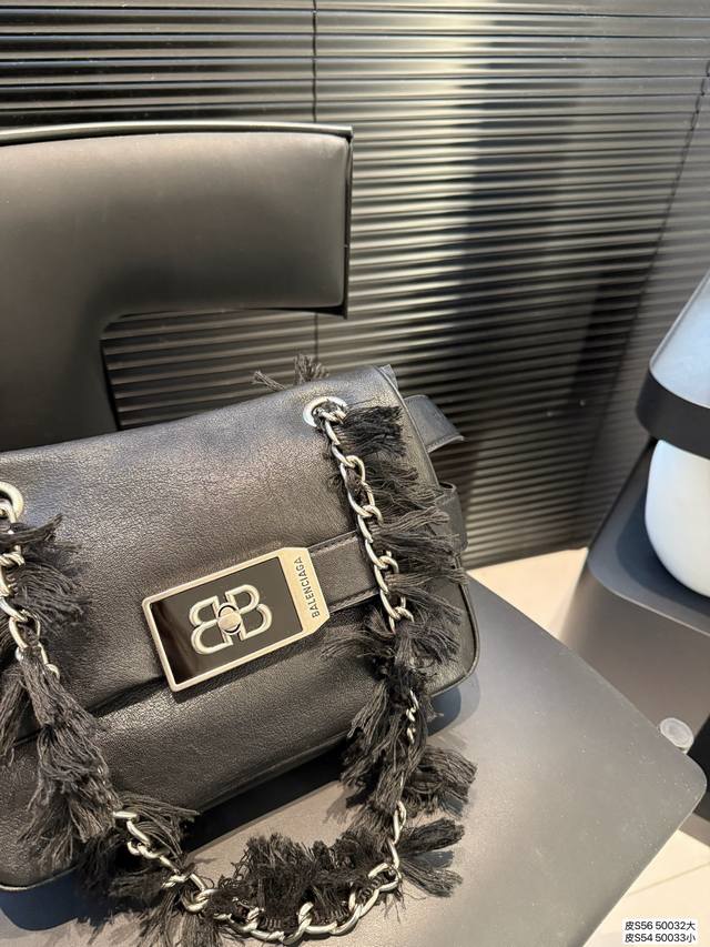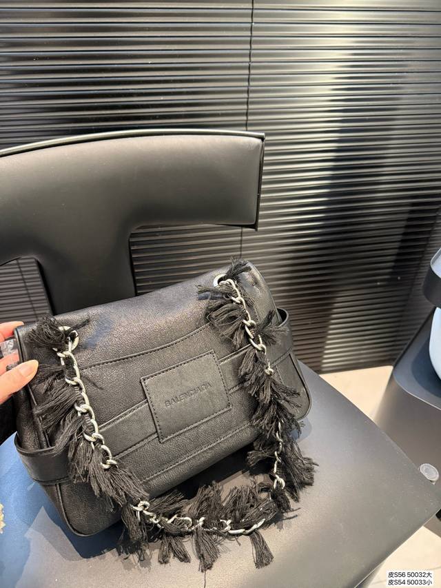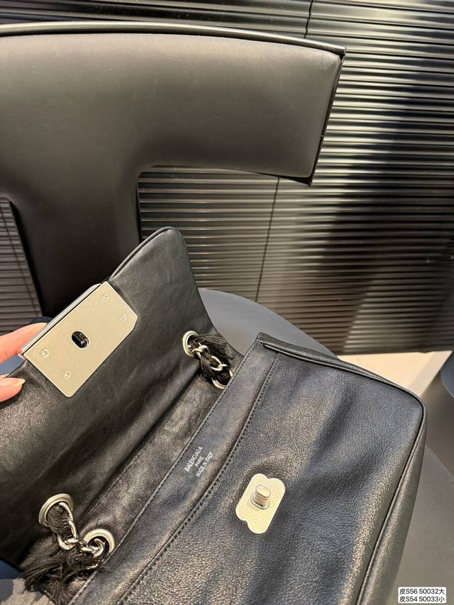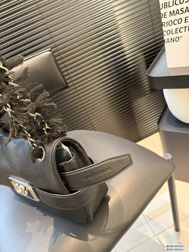 balenciaga 在上海兴业太古汇旗舰店率先发售春季25秀款 Modu 手袋,新作致敬上海「魔都」之称,采用黑色小牛皮塑造经典翻盖包型,最大亮点是将一条皮带固定于包盖之上,皮带扣自然幻化为包包的锁扣,另一端则自然垂落营造出叛逆不羁格调。金属链带中编入经过水洗做旧处理的旧鞋带,像是放在行李箱里不小心缠在了一起。