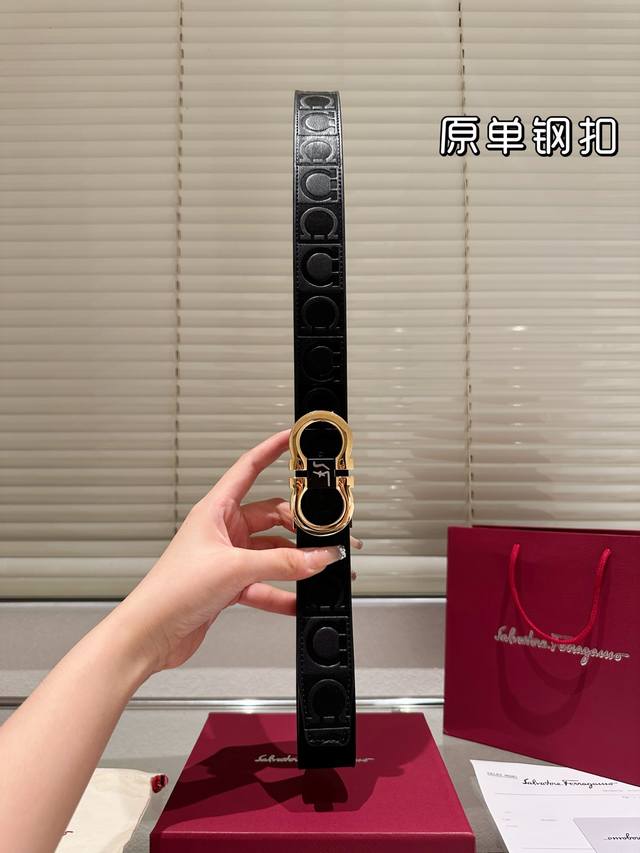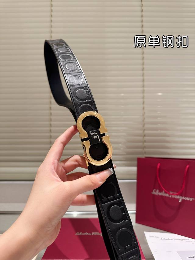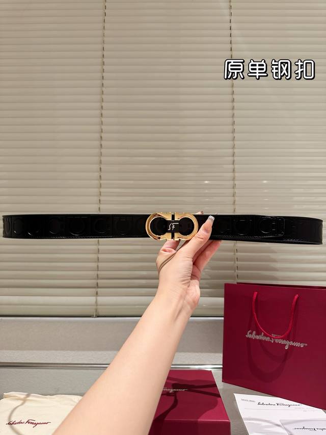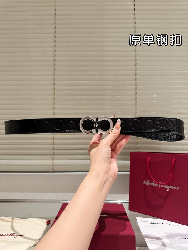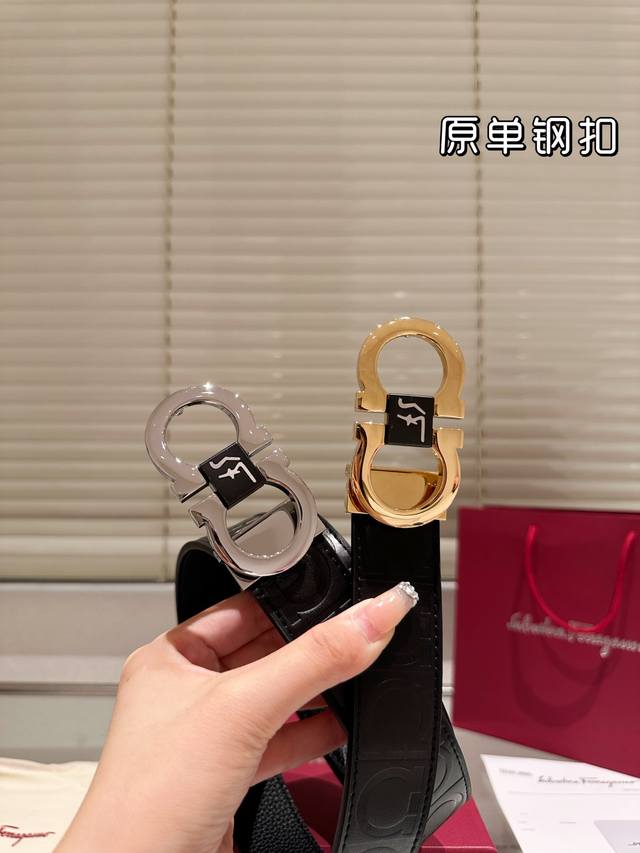 钢扣 高版本!腰带 菲拉格慕牛皮皮带~热门款 男女通用皮带里面最火的版本啦~质量很好 全套包装!五金绝对不褪色 皮带头和专柜一样的哦~ 配礼盒手提袋发票
