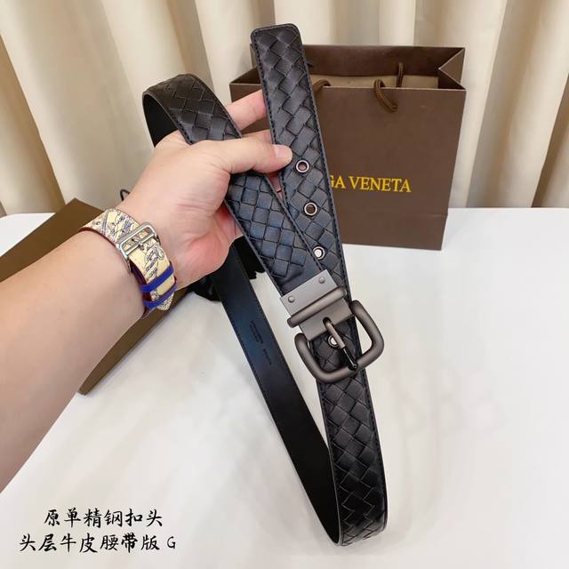 Bv葆蝶家 原单新品 带身采用雙面意大利進口原廠牛皮编织 非市场普通版本 百搭适合各种场合 扣头精品设计注意细节 3.5Cm