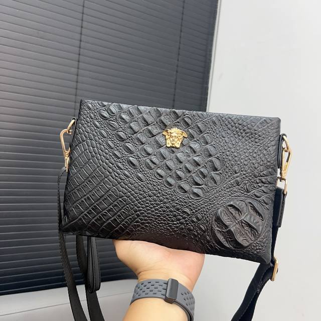 / Versace 范思哲 多功能牛皮手拿包单肩包男士斜挎包 采用精湛镶嵌细工,实物拍摄 原厂原版面料 配送防尘袋 28 X 18 Cm。