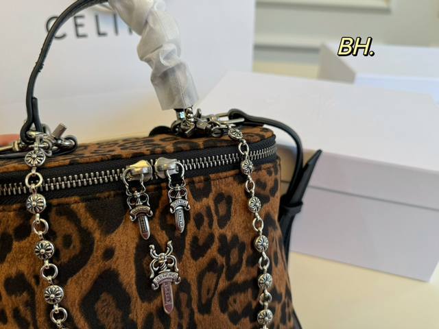牛皮 无盒 Size:27*16Cm Chrome Hearts克罗心经典黑色保龄球包包 保龄球包太百~搭了 一眼就心动 五金也太漂亮了,做工非常精致