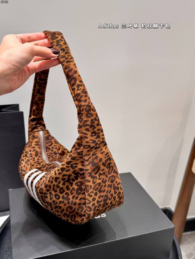 / 带盒子 Adidas阿迪达斯三叶草豹纹腋下包 阿迪达斯三叶草系列豹纹腋下包,帆布材质+经典豹纹,搭配白色三叶草标志,复古又时髦。包型小巧,容量适中,手机、雨伞、