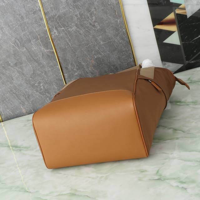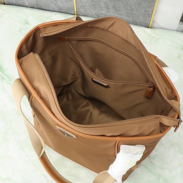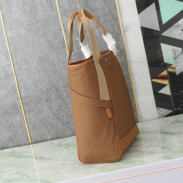 新款托特包2Vg119 这款托特包运用几何线条勾勒出鲜明的建筑感廓形,巧妙结合美学与功能。大容量设计搭配编织袋提手,设有两个大号实用斜口袋。以皮革细节点缀实用主义Re-Nylon包体,饰有涂珐琅三角形金属徽标。轻便又实用,帅哥们,赶紧入手吧 长31.5X高42X底17Cm
