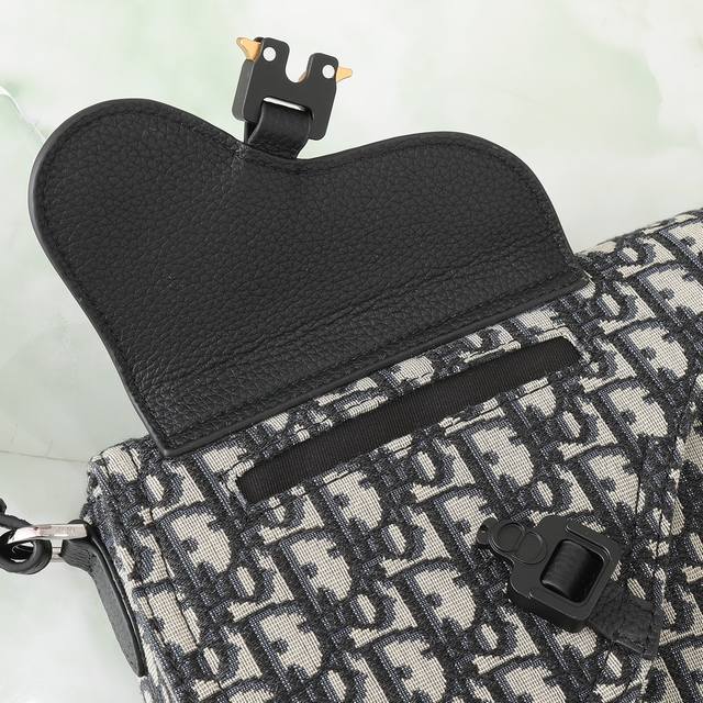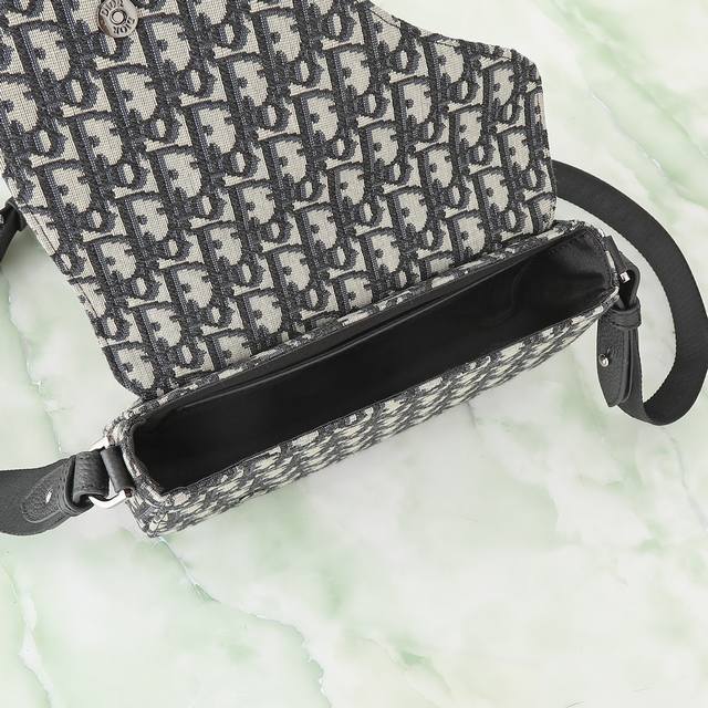 这款马鞍信使包是二零二四秋季男装系列新品,精巧时尚。采用米色和黑色 Oblique 印花面料精心制作,搭配黑色粒面牛皮革马鞍翻盖,点缀以铝扣提升格调。宽敞的内部空间设有一个插袋,可收纳各种日常用品,搭配可调节的 Christian Dior 尼龙提花肩带,可肩背或斜挎。